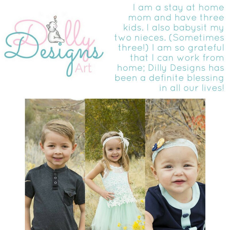 Fun Fact: I am a stay at home mom and have three kids. I also babysit my two nieces. (Sometimes three!) I am so grateful that I can work from home; Dilly Designs has been a definite blessing in all our lives!