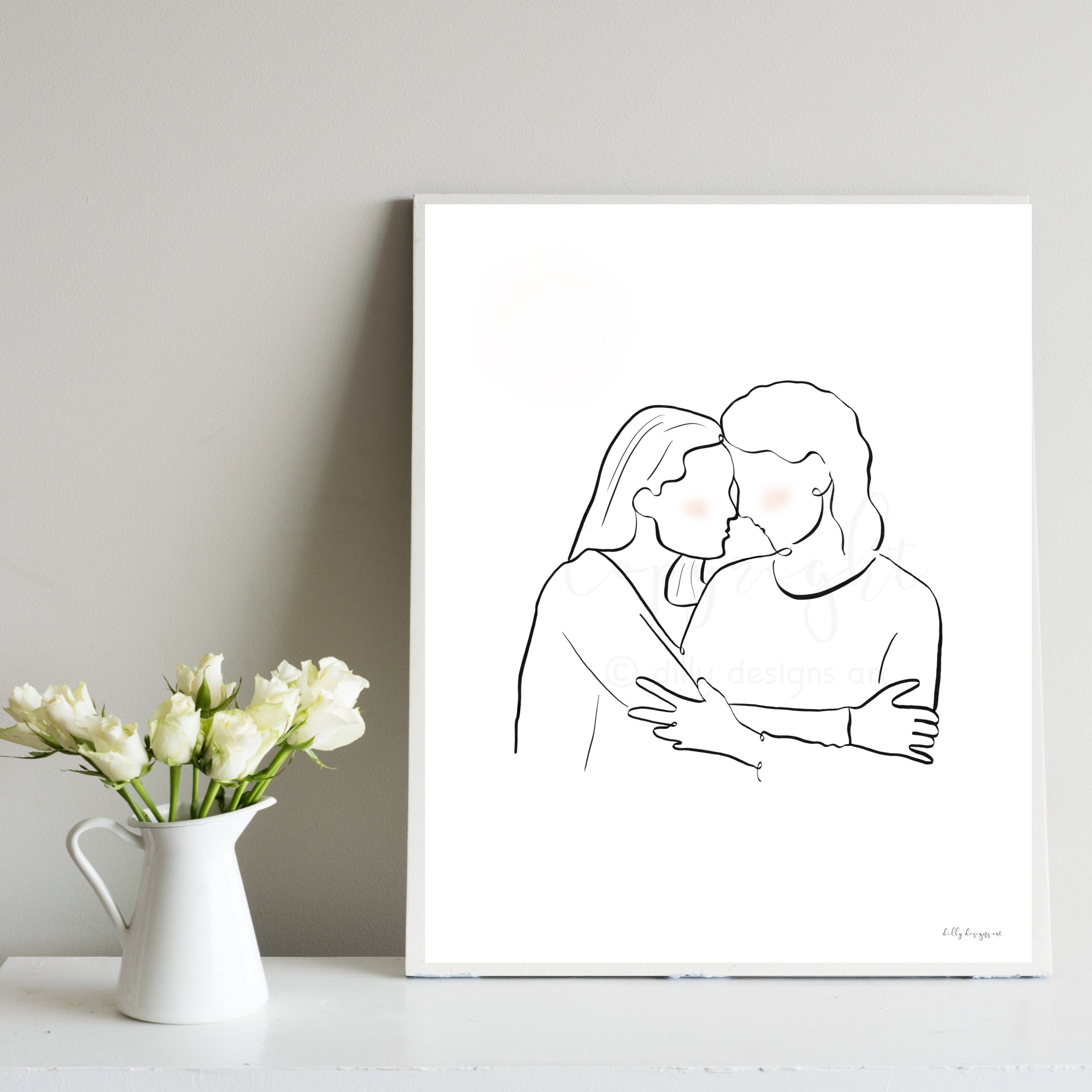 Mom and Daughter, Printable Line Art, Mother Gift, Gift for Mom, Adult Daughter, Mom Gift, Mom Art, Mother's Day Gift,Mother's Day Printable