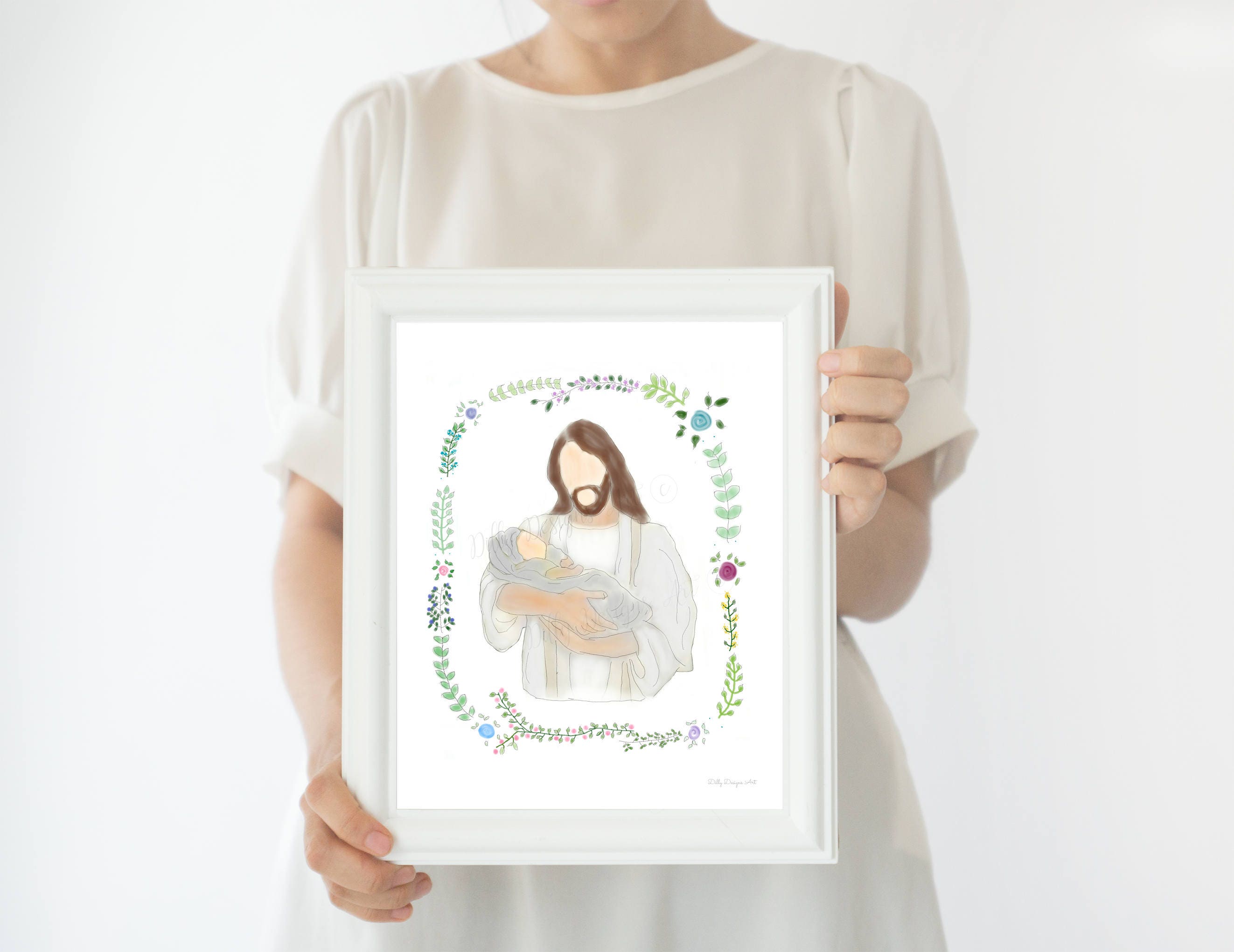 Dilly Designs Art began in 2016 with a Christ and Infant piece that gained quick popularity. More and more people began asking for more comfort pieces that they could give to their friends and loved ones during life's most difficult and heart-wrenching trials. They simply wanted something more to give than just flowers, food, or other culture standards. Due to this, Dilly Designs quickly grew to what it is today- a place for people to turn to when they want to help someone and they don't know how. A place they can get something to gift, when words simply are not enough. I feel so much love for each and every piece I've created- and for each of you. I shed tears over your stories and say many prayers for you; and I thank God every day that I get to help in any small way.