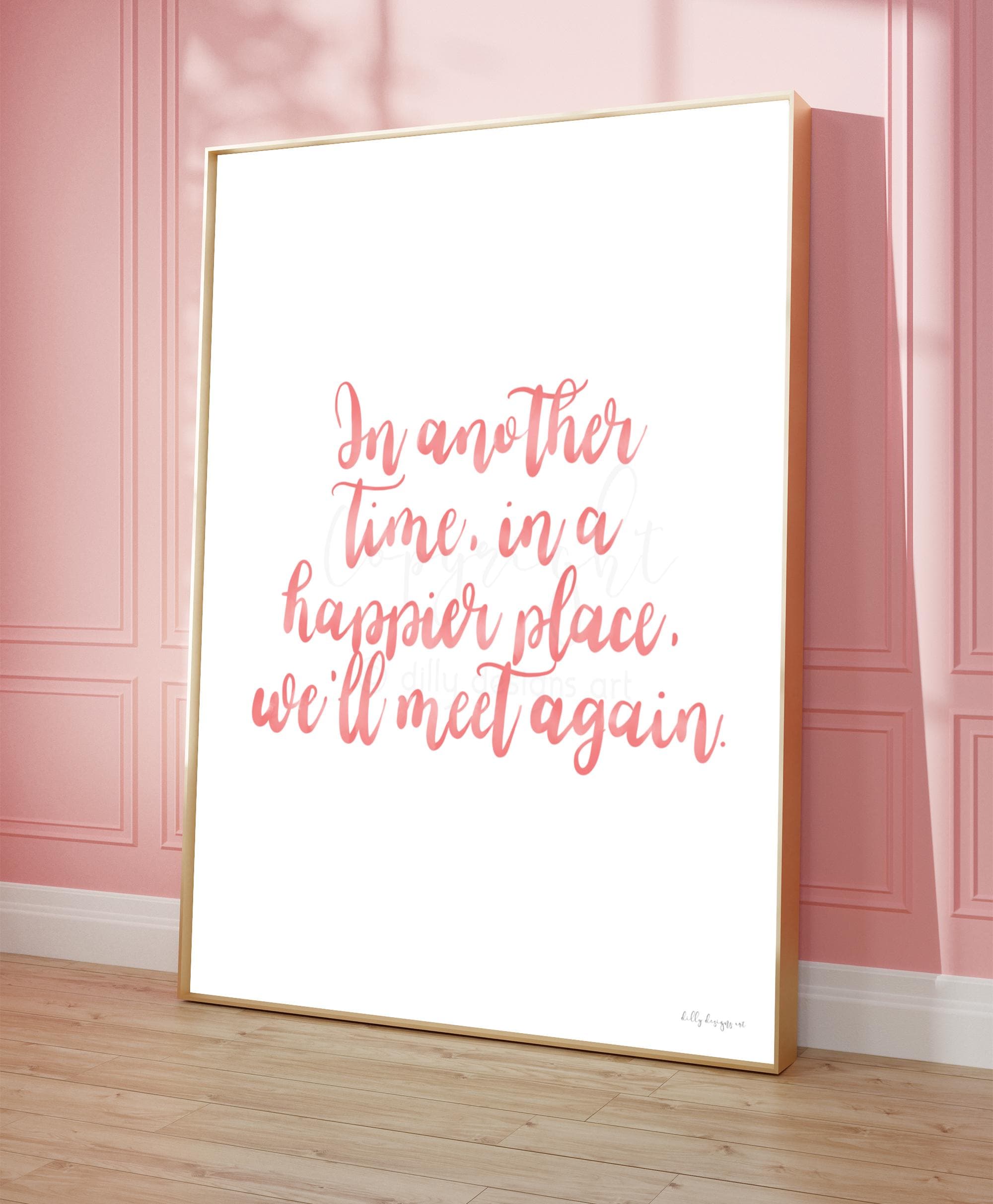 This “We’ll meet again” calligraphy design was created with soft pink ink on a white background. The pink tones give this version a tender, gentle feel – a reminder of love, care, and the comfort of holding memories close. I made this piece to offer encouragement in times of grief and to serve as a heartfelt gift for someone experiencing loss.