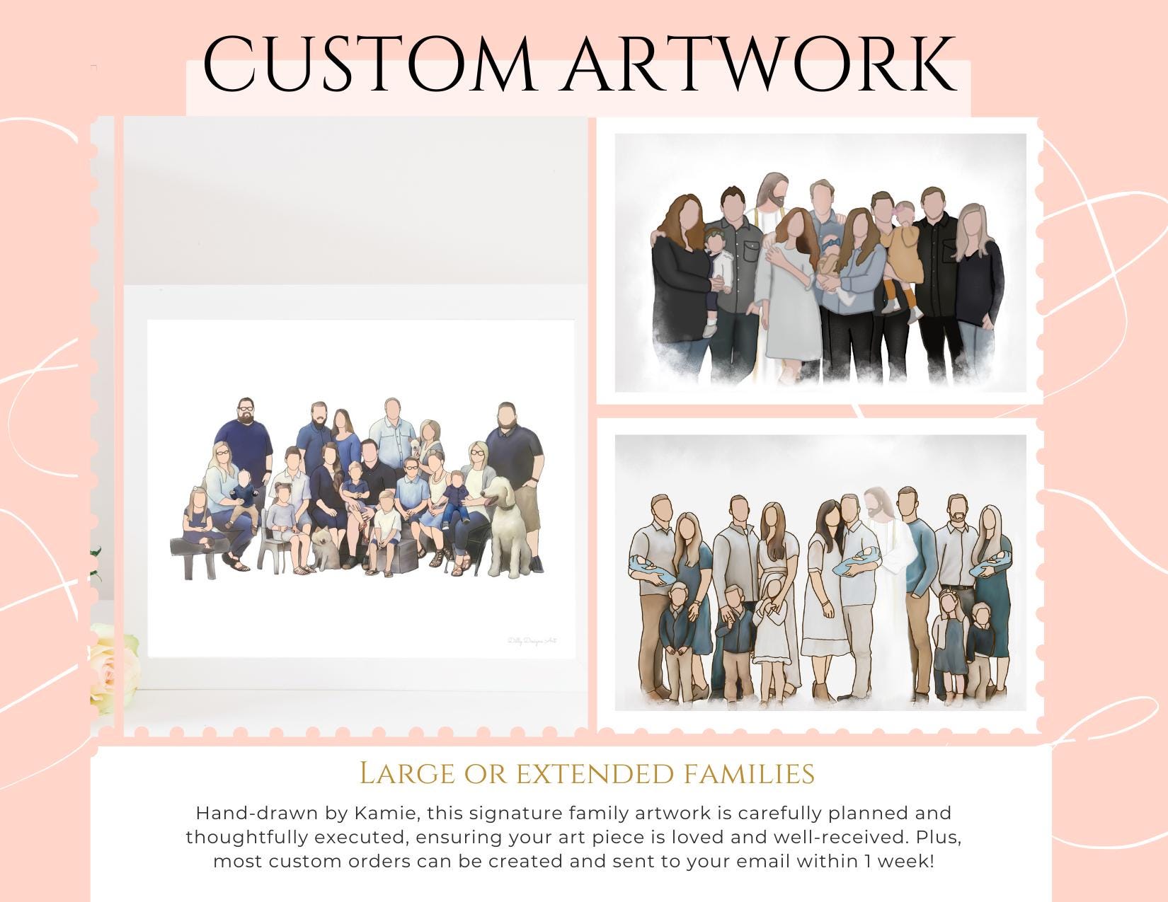 Customs by Kamie, Pay For Custom Artwork, Customize Art, Faceless Family Portrait, Custom Orders, Custom Artwork, Personalized Artwork, Custom Family Art, Personalized Family Art, Custom Gift, Personalized Gift, Printable Art, Hand Drawn